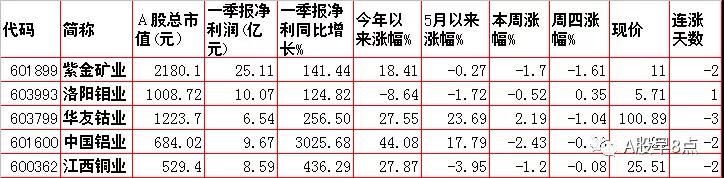 相关概念股:紫金矿业、洛阳钼业、华友钴业、中国铝业、江西铜业
